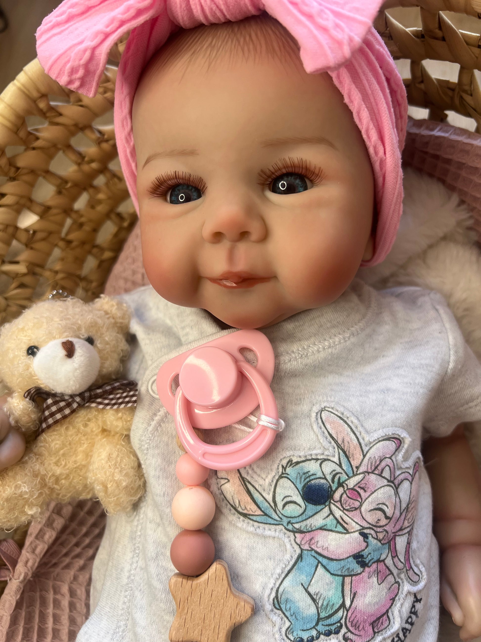 Incluye la ropa de la imagen, chupete, chupetero y diadema